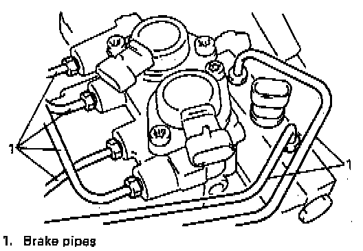 NOTE: Place a shop towel beneath the hydraulic modulator brake pipes to prevent brake fluid from contaminating motor pack or electrical connectors.