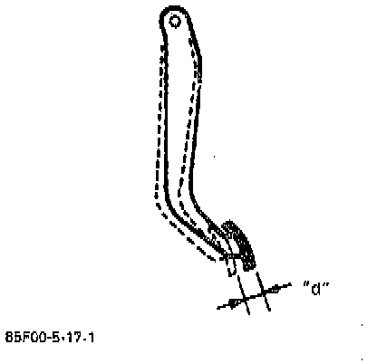Pedal play should be within specification. If out of specification, check brake light switch for proper installation position and adjust if necessary.Pedal play "d" is 1 - 8 mm (0.04 - 0.32 inch.)