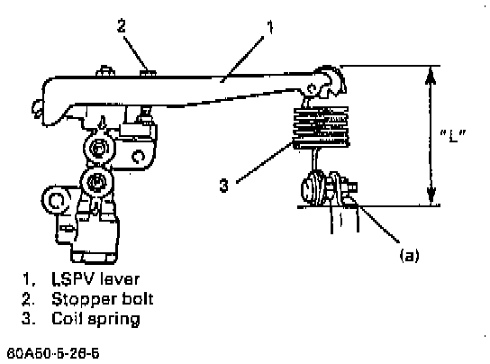 2. Push up LSPV lever with finger till it contacts stopper bolt and measure length of coil spring ("L" in figure) as it is pulled.