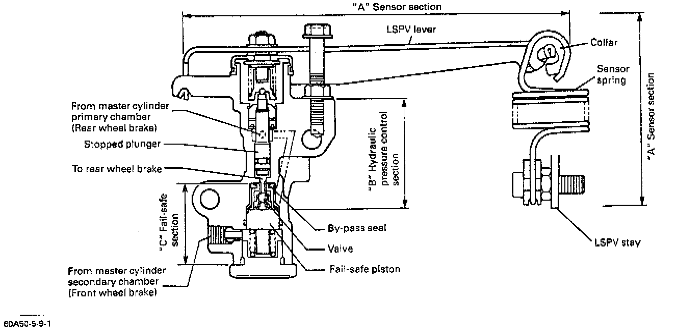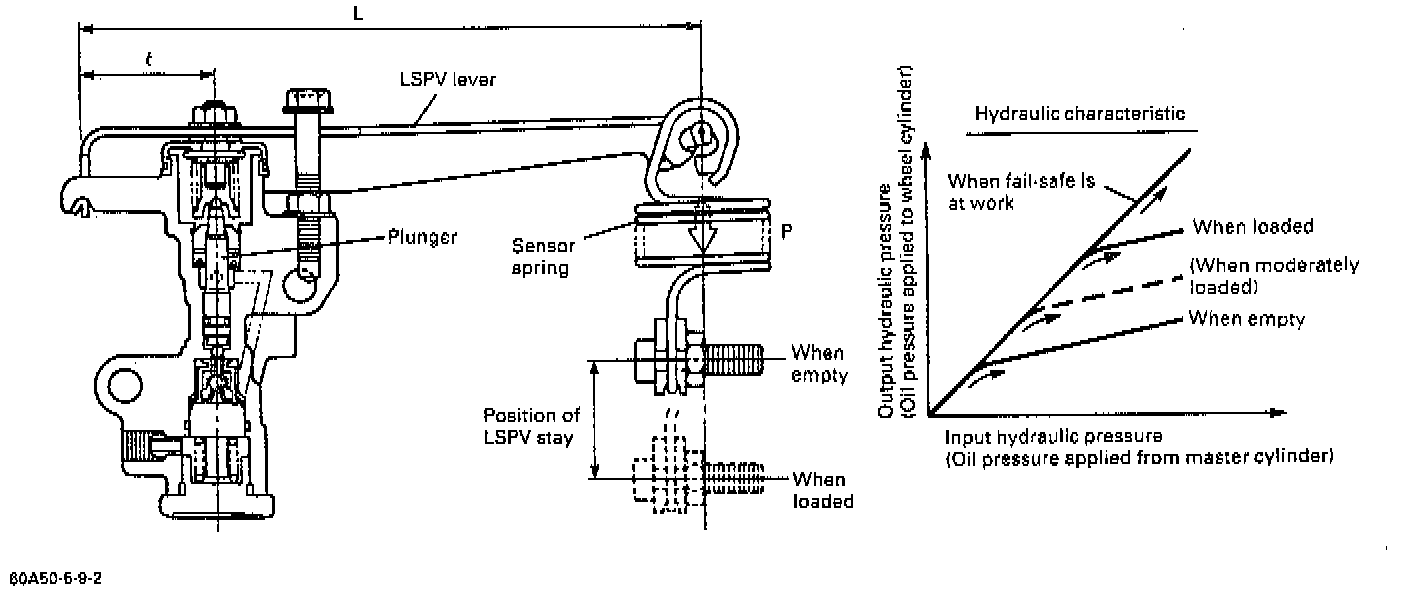 As the sensor spring length changes, the force affecting the plunger in LSPV by way of the lever changes so that the hydraulic characteristic suitable for the load weight becomes available.