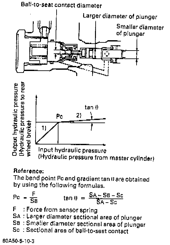 The relationship between the force applied to the plunger and the bend point in the hydraulic characteristic graph is described under 2 Operation of hydraulic pressure control section.
