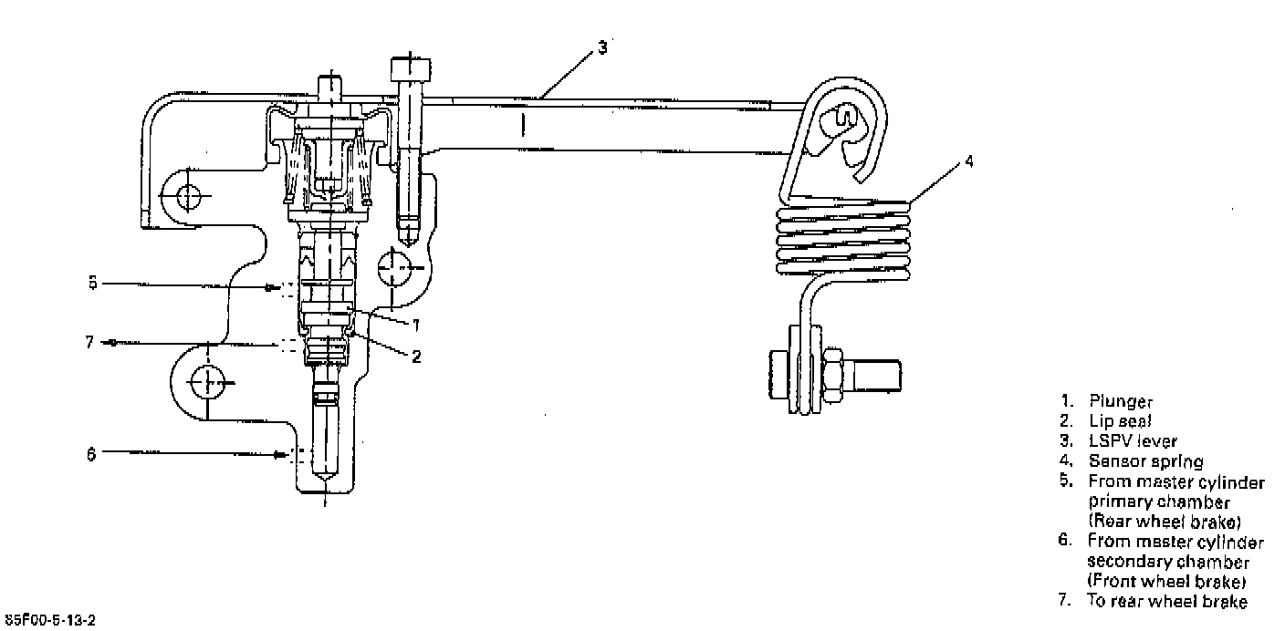 As the sensor spring length changes, the force affecting the plunger in LSPV by way of the lever changes so that the hydraulic characteristic suitable for the load weight becomes available.