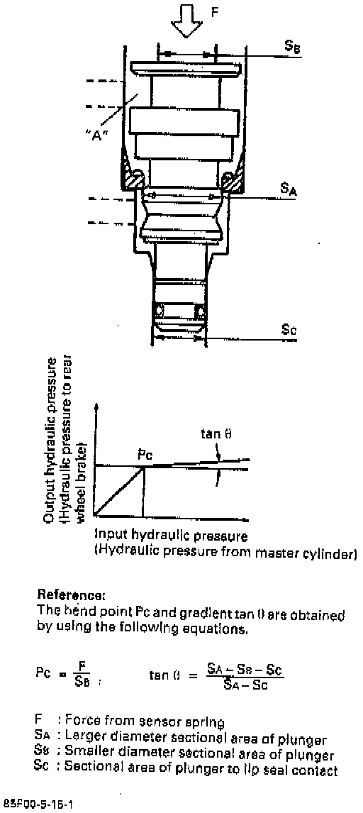 When the hydraulic pressure is not applied to the front brake (secondary), the force to push up the plunger reduces by the amount corresponding to that of the front brake. This means that in order for the plunger to operate, a higher than normal hydraulic pressure is required for the rear brake (primary).