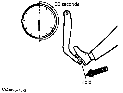 2) Hold brake pedal depressed for 30 seconds. If pedal height does not change, condition is good. But it isn't if pedal rises.