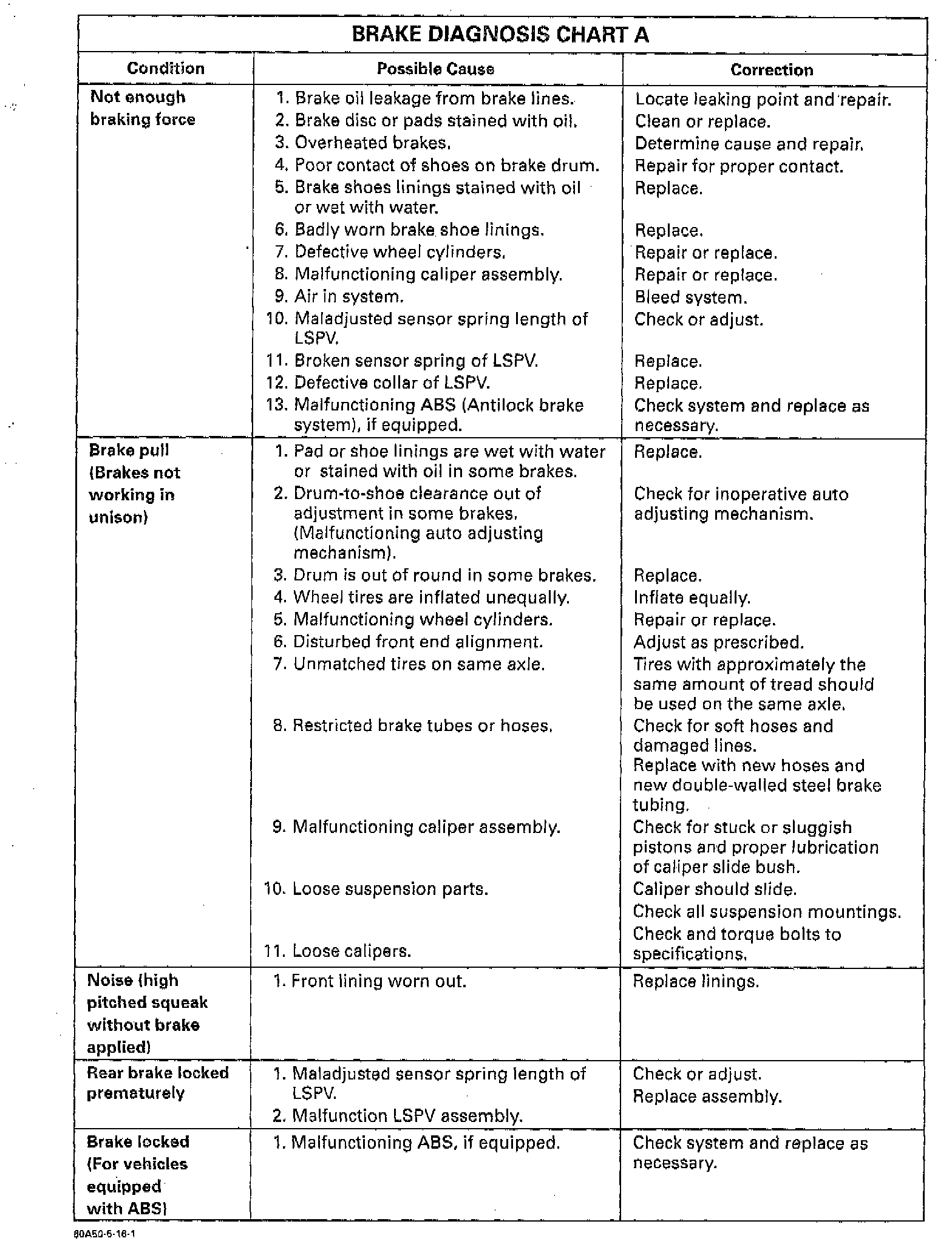 Brake Diagnosis Chart A