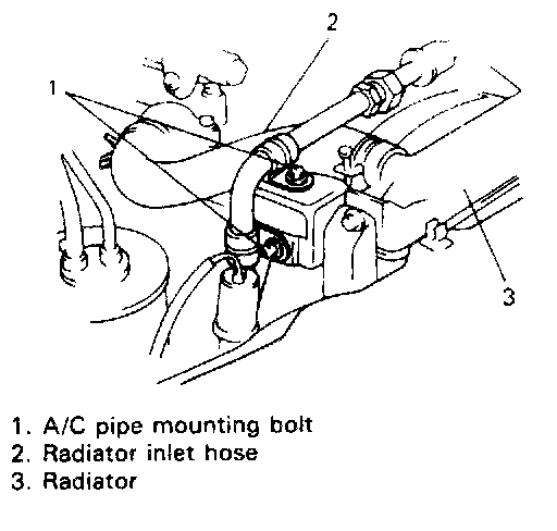 3. If equipped with A/C or power steering system, disconnect radiator inlet hose from radiator.