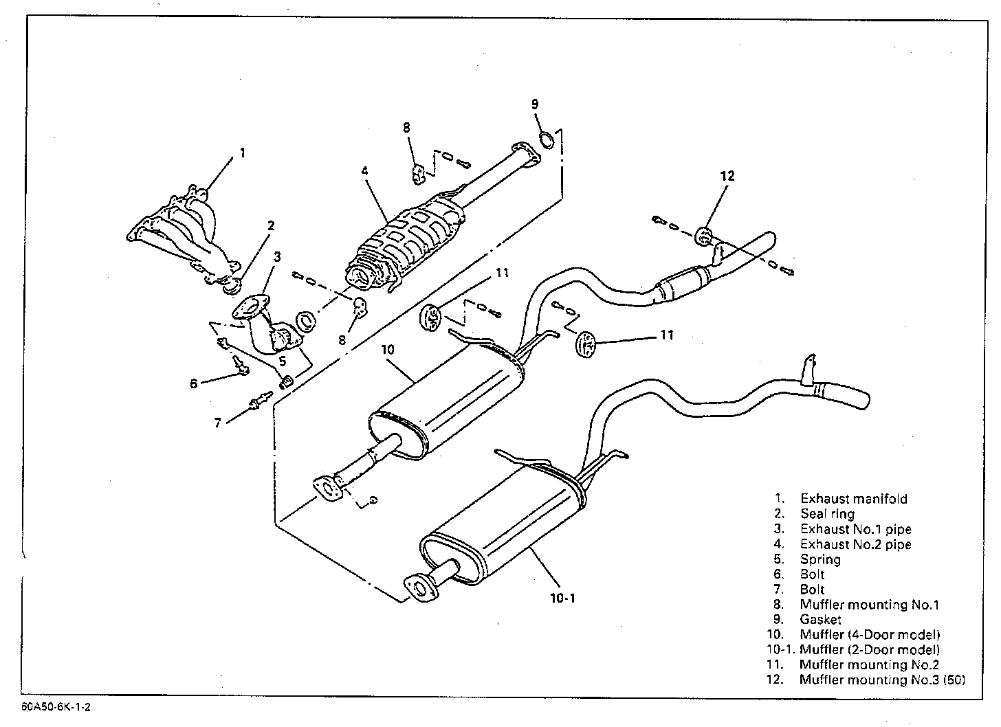 The exhaust system consists of an exhaust manifold, an exhaust No. 1 pipe a three way catalytic converter, a muffler, and seals and gaskets etc.