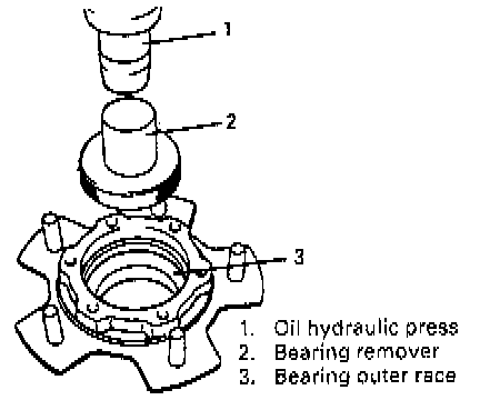 8. Remove wheel hub complete with bearings and oil seals.