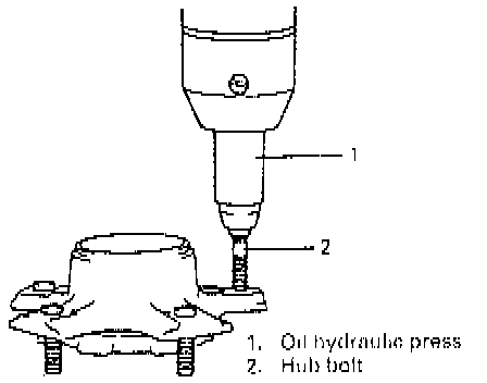 1. Insert new stud in hub hole. Rotate stud slowly to assure serrations are aligned with those made by original bolt.