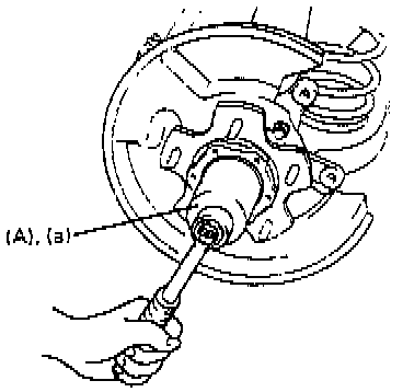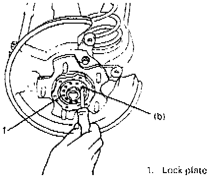 9. While turning wheel hub by hand, tighten wheel bearing lock nut to specified torque.