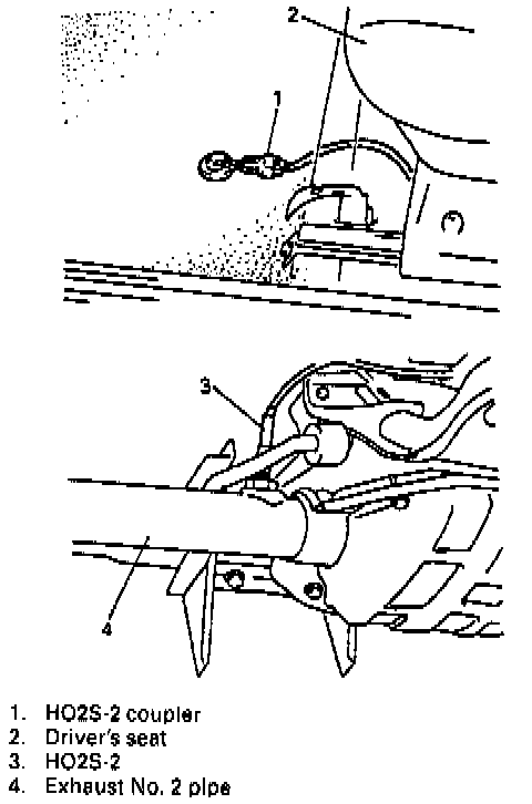 5) Remove oxygen sensor from exhaust No. 2 pipe.