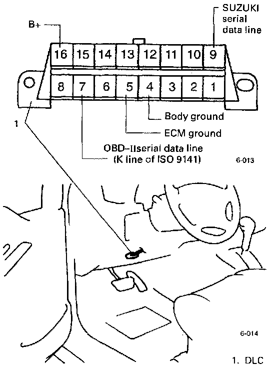 OBD-II serial data line (K line of ISO 9141) is used for SUZUKI scan tool (Tech-1) or OBD-II generic scan tool to communication with ECM. SUZUKI serial data line is used for SUZUKI scan tool (Tech-1) to communicate with an electronic control unit other than ECM (Airbag SDM, ABS control module, etc.).