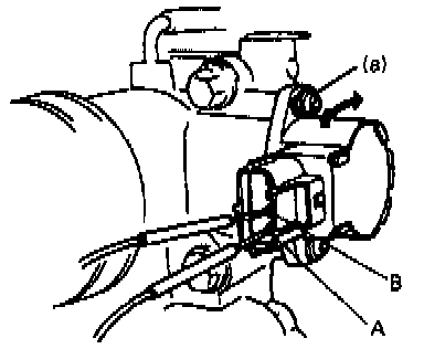 7) Check that there is continuity between terminals A and B when 0.5 mm (0.020 in) thickness gauge is inserted. If check result is unsatisfactory in steps 6) and 7), it means that installation angle of TP sensor is not adjusted properly. Therefore, start all over again from step 1).