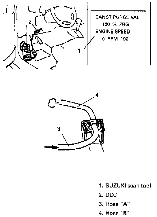 - Turn ON EVAP canister purge valve by using SUZUKI scan tool with ignition switch ON.