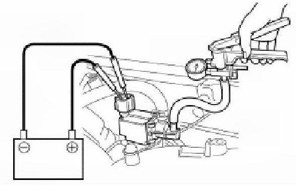 4. Keeping the 12V-battery connected to the terminals of EVAP canister purge valve and apply vacuum to outlet nozzle of EVAP canister purge valve by using special tool as described above. If vacuum can not held the EVAP canister purge valve is in good condition. If the vacuum is held replace EVAP canister purge valve with new one.