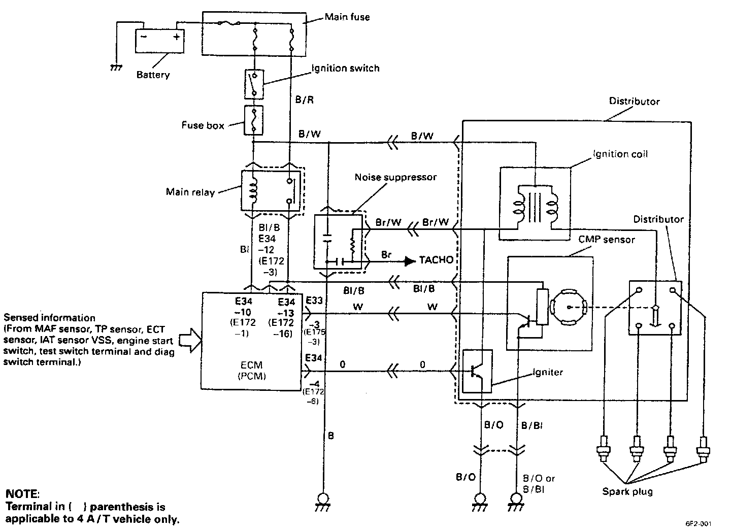 - MAF sensor, TP sensor, ECT sensor, AT sensor, VSS, engine start switch and test switch terminal.