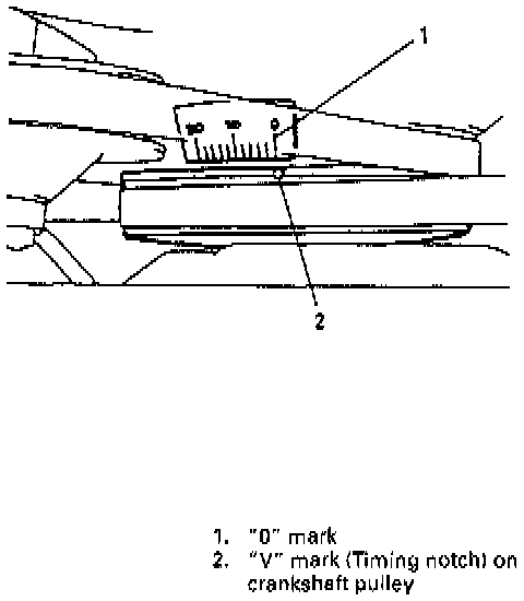 (1) Turn over crankshaft in normal direction (clockwise as viewed from crankshaft pulley side) until "V" mark on pulley aligns with timing mark "0" (zero) on timing tab.