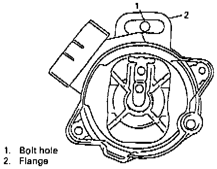 4) Insert distributor into gear case in such a way that the center of distributor flange will coincide with distributor flange bolt hole provided in distributor gear case. When inserting the distributor completely, position of distributor rotor becomes as shown in figure. Secure distributor in place tentatively by making flange bolt finger-tight.