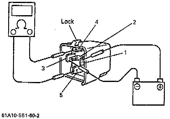 4. Check that there is continuity between terminal Nos. 4 and 5 when battery is connected to terminals 1 and 3.
