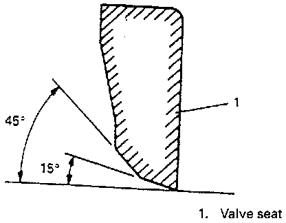 NOTE: Use valve seat cutters to make two cuts as illustrated in figure. Two cutters must be used: the first for making 15� angle, and the second for making 45� angle. The second cut must be made to produce desired seat width.