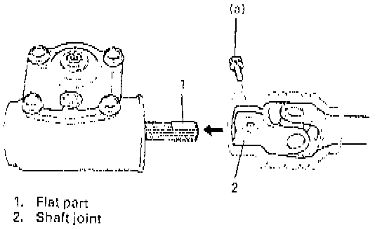 NOTE: Align flat part of steering gear box shaft with bolt hole of lower shaft joint as shown. Then insert gear box shaft into lower shaft joint.