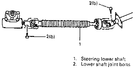 1. Check steering lower shaft joints and shaft for any damages such as crack, breakage, malfunction or excessive play. If anything is found faulty, replace as shaft assembly.