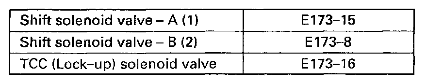 - Figure at the left shows shift solenoid valve check. Check TCC solenoid valve also in the same way.