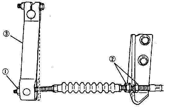 3. Loosen outer cable nuts (2) then disconnect cable from bracket and release arm (3).