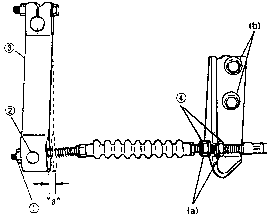 6. Disconnect cable hook at clutch pedal shaft arm (4), then take off cable.