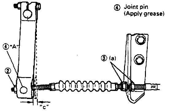 2. If free travel is out of specification, adjust it with joint nut (2), while making sure that outer cable nuts (3) are tightened around the center of outer cable thread portion.