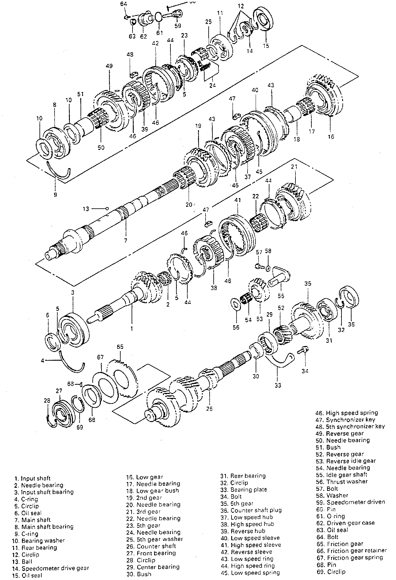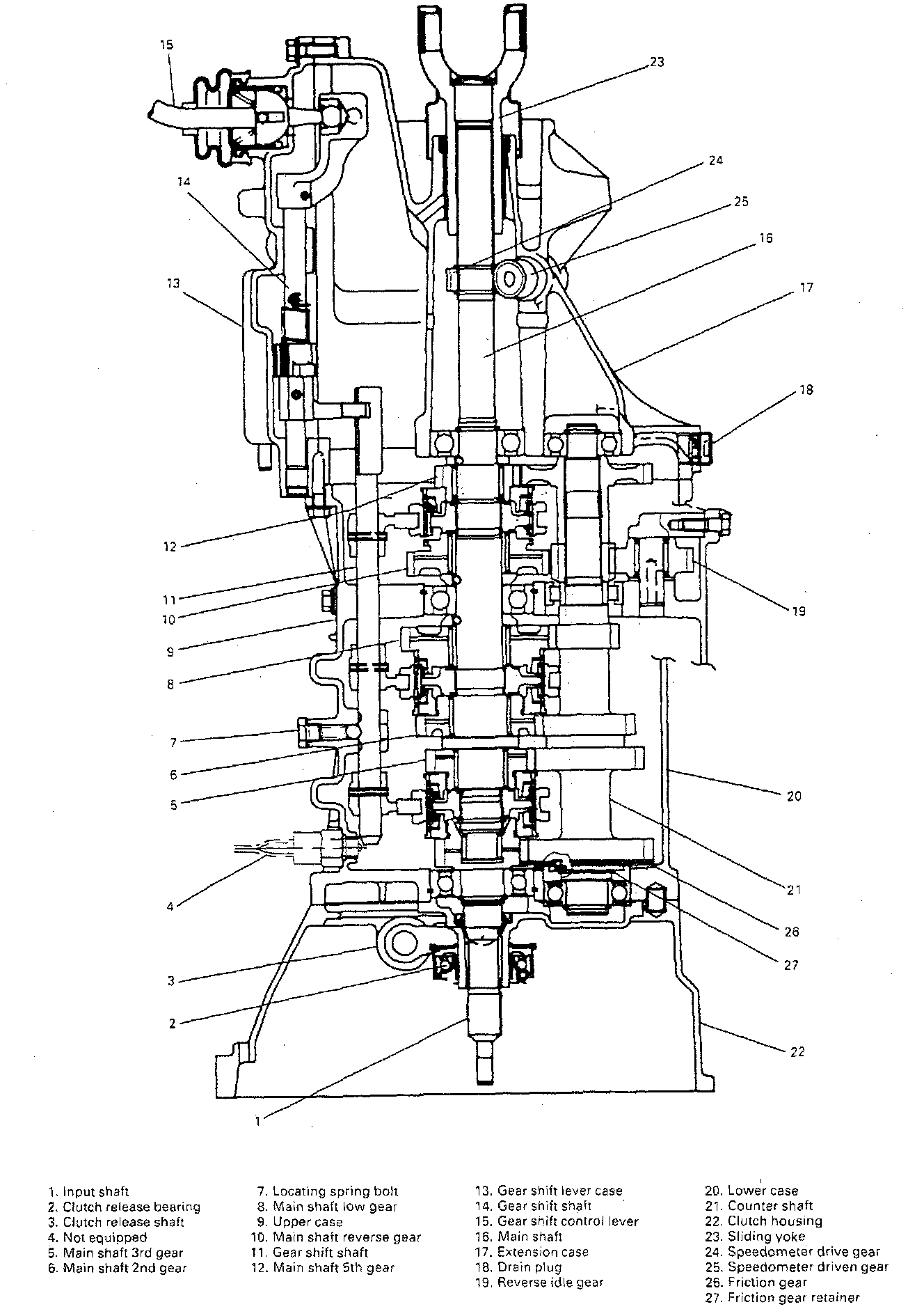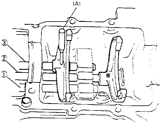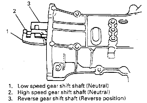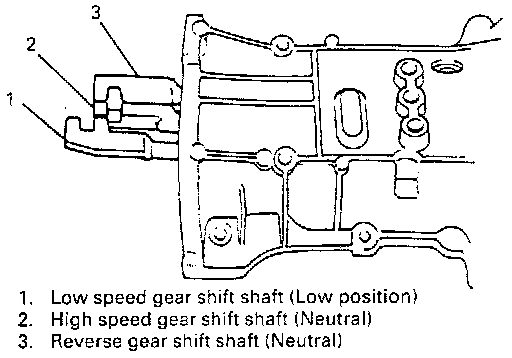 - Note that high speed gear shift shaft can't be inserted unless reverse gear shift shaft (3) is placed at neutral position.