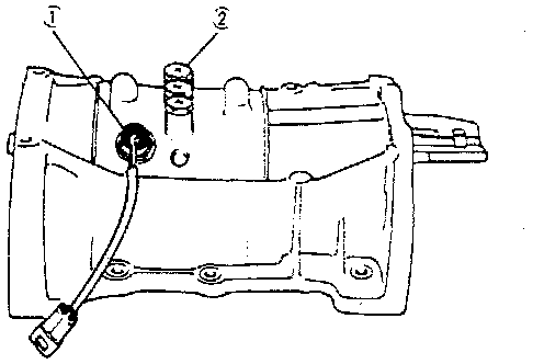 1. Remove back up light switch (1) and locating spring bolts (2).