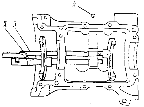 2. Insert each gear shift shaft into case and check that it moves smoothly. If it doesn't, correct by using oilstone, reamer or the like.