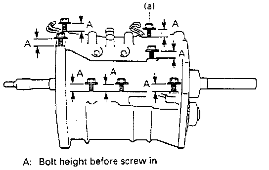 3. Place bolts at their positions and check to make sure that their height from case surface is the same before tightening them. Also, check clamp position and torque them to specification.