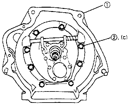 2. After cleaning mating surfaces of both cases, coat mating surface of upper case (3) with sealant evenly and put it over lower case. At this time, all gears and forks should be set to neutral position.
