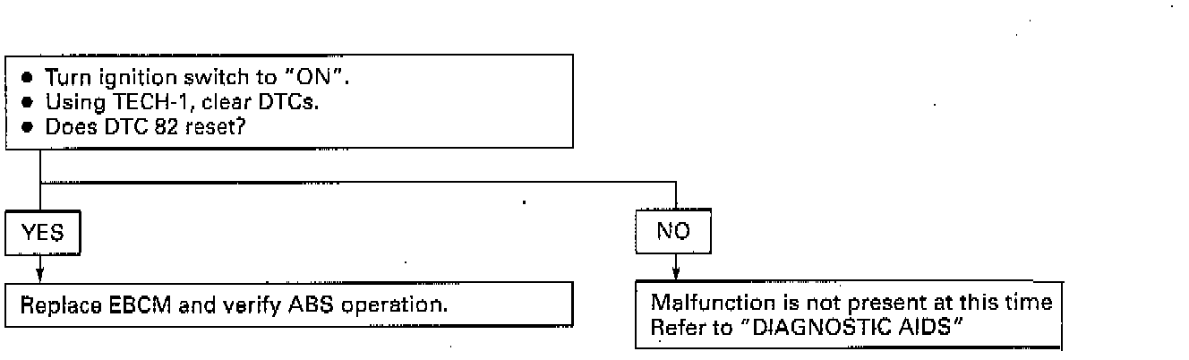 An intermittent DTC 82 may be caused by a bad cell in the EEPROM that is sensitive to temperature changes. If DTC 82 failed more than once, but is intermittent, replace the EBCM.