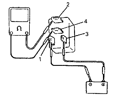 3) Check that there is continuity between terminals 2 and 4 when battery is connected to terminals 1 and 3.