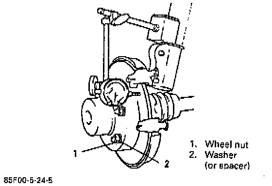 Use wheel nuts and suitable plain washers to hold the disc securely against the hub, then mount a dial indicator as shown and measure the runout at 25 mm (0.98 inch)from the outer edge of the disc.