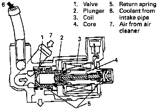 The IAC valve controls opening of the bypass air passage (i.e., bypass air flow). The opening increases and decreases according to the electric current flow to the IAC valve which is controlled by ECM.