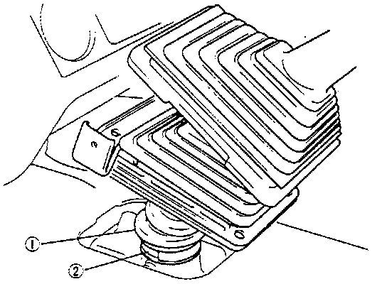 3. Remove boot clamp and then remove boot No. (1) from transmission shift lever case (2).