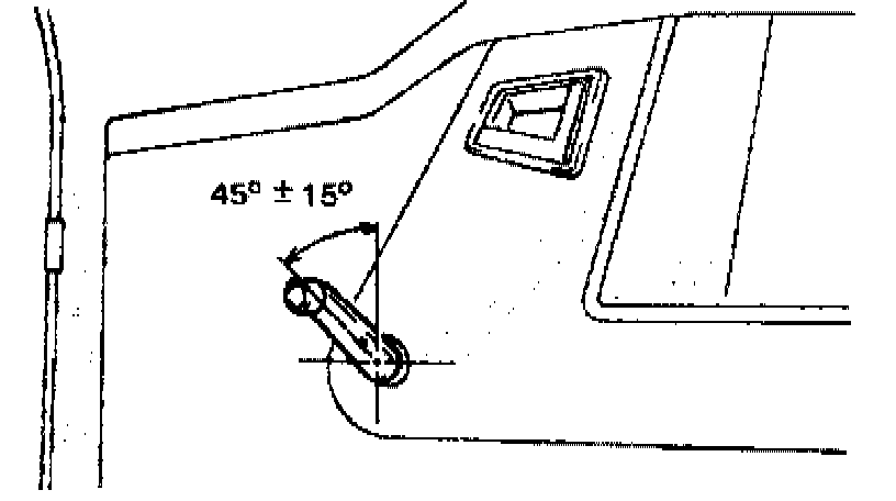 - Install door window regulator handle so that it has an angle as shown when glass is fully closed.