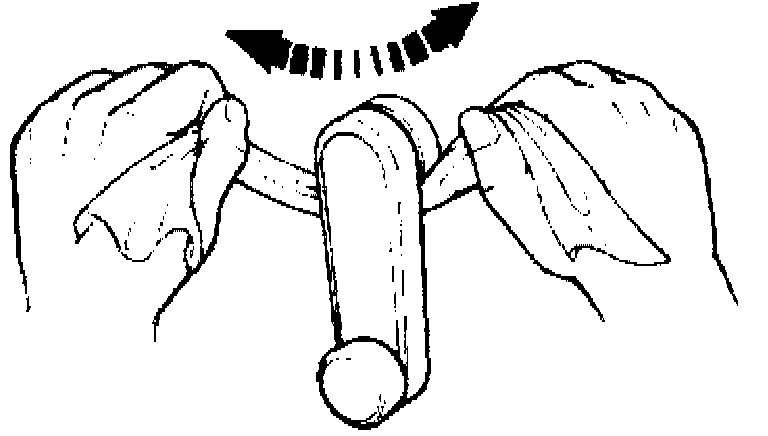 4) Remove window regulator handle (if equipped). To remove regulator handle, pull off snap ring by using a cloth as shown in the figure.