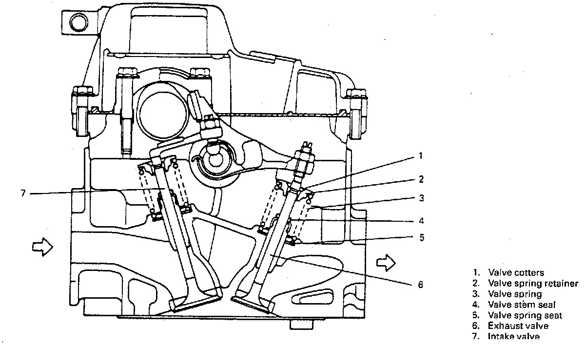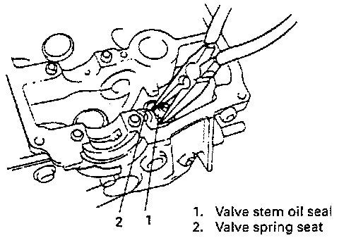 6. Remove valve stem oil seal from valve guide, and then valve spring seat.