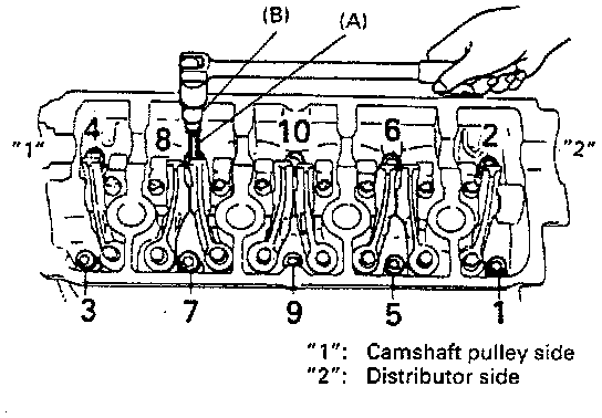 12. Loosen cylinder head bolts in such order as indicated in figure and remove them.