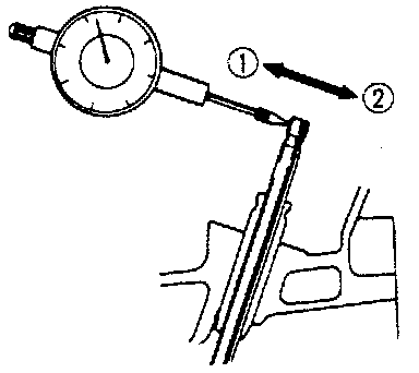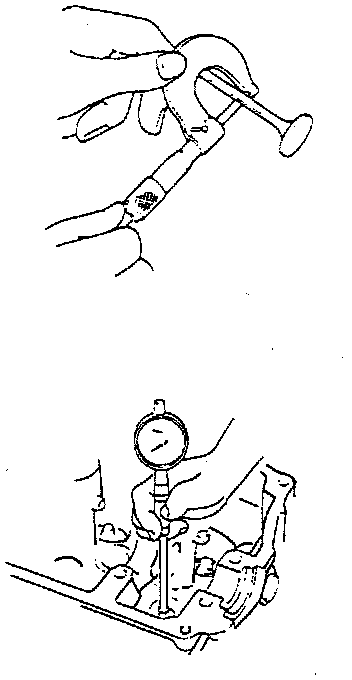 If bore gauge is not available, check end deflection of valve stem with a dial gauge instead.