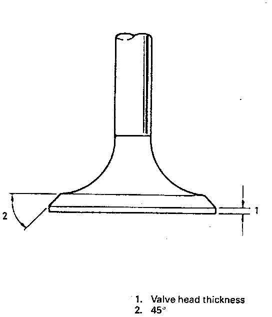 - Inspect valve stem end face for pitting and wear. If pitting or wear is found there, valve stem end may be resurfaced, but not so much as to grind off its chamfer. When it is worn so much that its chamfer is gone, replace valve.