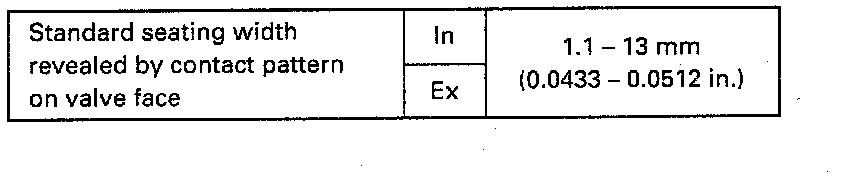 Seat width for exhaust valve seat: 1.1 - 1.3 mm (0.0433 - 0.0512 inch)
