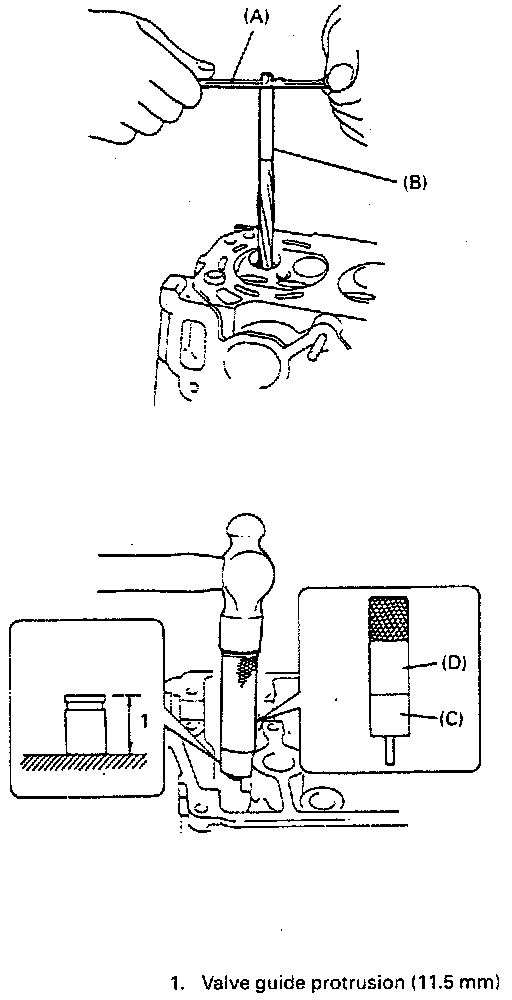 NOTE: Do not reuse valve guide once disassembled. Be sure to use new valve guide (Oversize) when assembling.