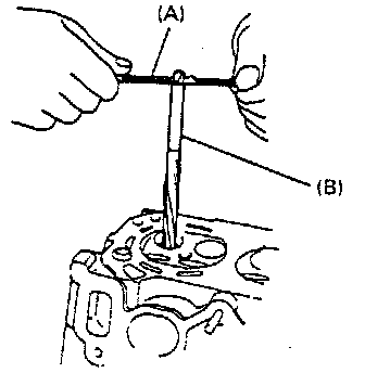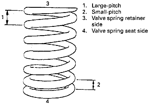 Each valve spring has top end (large-pitch end) and bottom end (small-pitch end). Be sure to position spring in place with its bottom end (small-pitch end) facing the bottom (valve spring seat side).