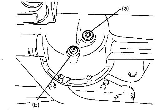 4. Apply sealant to thread of drain and level/filler plugs (a) and (b) and torque plugs to specification.